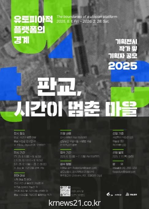 선정된 작가는 오는 8월 1일부터 판교 근대역사문화공간 일대인 장미사진관, 삼화정미소, 촌닭집 등 등록문화재 공간에서 전시를 진행하게 된다.