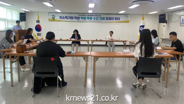 부산 동래구 사직2동(동장 김선희)은 지난 23일 저소득 학생 학원 무료 수강 지원 관계자 회의를 동 행정복지센터에서 개최했다고 밝혔다. 이번 사업은 저소득가정 학생의 무한한 꿈과 성장을 위해 추진하는 학원 무료 수강 지원 사업의 운영 사항을 중간 평가하고, 발전 방안을 모색하고자 마련됐다.