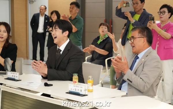 이날 위촉식은 김기웅 군수, 박민수 홍보대사, 팬클럽 회원 등 30여 명이 참석한 가운데 ▲홍보대사 위촉장 수여 ▲소감 발표 ▲기념촬영 순으로 진행됐으며, 특히 서천군청 홍보팀이 기획한 ‘AI 헌정곡’이 전격 공개되며 큰 화제를 모았다.