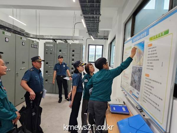 점검은 현장에서 직접이뤄졌으며, 배수펌프장 가동 상태, 전력 공급 여부와 하천변 차단시설의 작동 여부 및 호우예비특보 발효에 따른 차단상태를 중점적으로 살폈다.