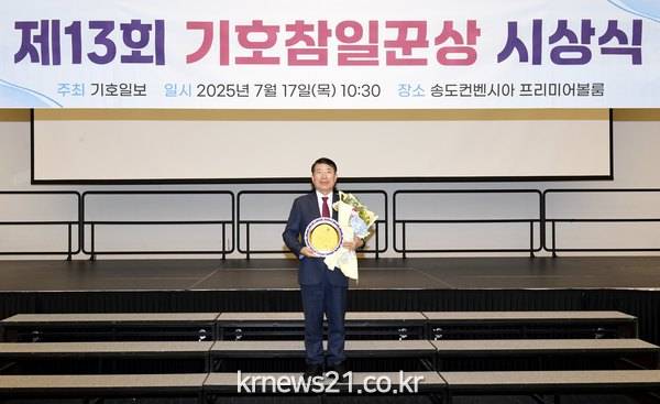 백경현 구리시장이 7월 17일(목), 인천 송도 컨벤시아 프리미어 볼륨에서 열린 제13회 기호참일꾼상 시상식에서 기초단체장 부문 ‘기호참일꾼상’을 수상했다.