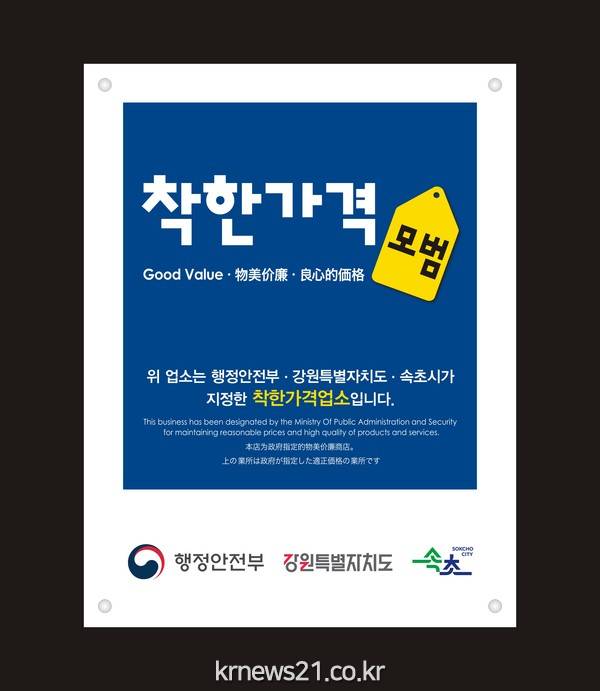 속초시, 착한가격업소 7개소 신규 모집 나서