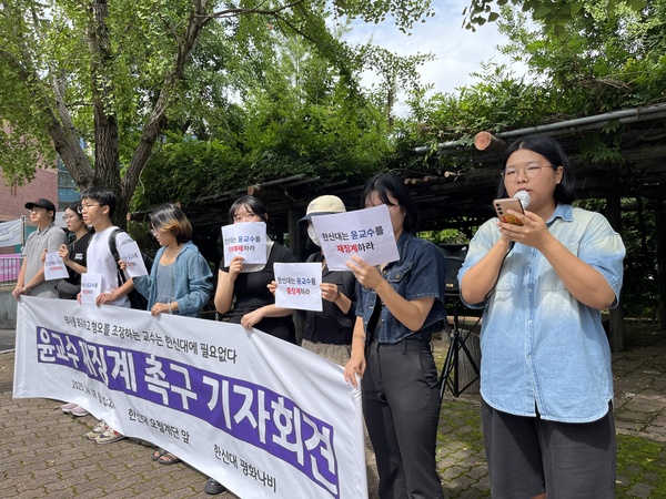 학생들은 성명서를 통해 “윤 교수의 발언은 비판이 아닌 비난이었고, 피해자와 학생들을 모욕한 것”이라며 “그런 사람을 다시 교단에 세우는 것은 과도한 징계가 아니라 오히려 당연한 조치”라고 주장했다. 이어 “재징계위원회를 조속히 구성해 해임 이상의 중징계를 내려야 한다”며 ▲재징계 ▲중징계 처분 ▲직위해제 등을 한신대 당국에 요구했다.