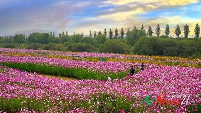 이 식물은 멕시코 원산으로 세계에 널리 관상용으로 재배되고 있다. 학명은 Cosmos bipinnatus Cav.이다. 본래 그리스어의 Kosmos에서 유래된 것으로서 이 식물로 장식을 한다는 뜻이다. 국명 코스모스는 속명을 그대로 사용한 것이다.