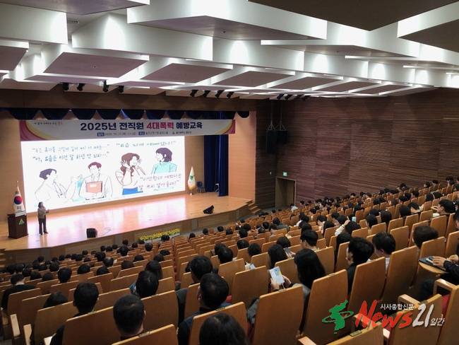 (뉴스21통신/최원영기자)=울산 울주군이 지난 23일과 24일 이틀간 군청 알프스홀에서 전 직원을 대상으로 성희롱·성매매·성폭력·가정폭력 등 4대폭력 예방교육을 실시했다