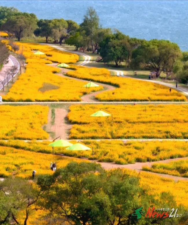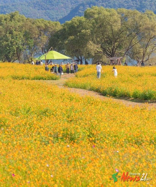 물의 정원의 총면적은 48만 4148㎡이다. 물의 정원 입구 왼쪽에 개방 화장실이 있으며, 별도의 주차장이 마련되어 있다. 물의 정원에는 ‘뱃나들이교’라 불리는 상징교가 있다. 뱃나들이교를 건너 정원으로 들어가면, 수려한 북한강과 초화 단지가 어우러져 있다. 북한강변 산책로를 따라 조성된 대규모 초화 단지에서는 5월에는 붉은 양귀비, 9월에는 노란 코스모스가 화려하게 피어난다. 산책길과 자전거길이 나뉘어 있으며, 액자뷰라 불리는 별도의 포토존이 설치되어 있다.