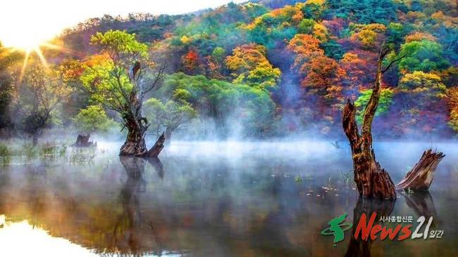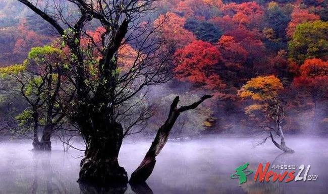 단풍[丹楓]. 단풍은 가을에 곱게 물든 잎으로 아름다움을 더해 준다. 단풍나무과(科) 식물로 녹색에서 붉은색으로 다시 노랑색으로 변하다 낙엽이 된다.