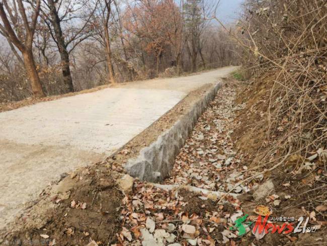 남동 임도는 강우 시 반복적으로 물이 넘치던 구간에 배수관로를 신설하고 노면을 정비해 우천 시 보행자와 차량 통행 불편을 해소했다.