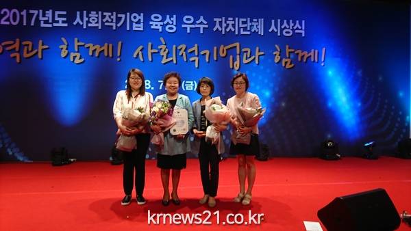 (뉴스21/장병기기자)=목포시가 고용노동부 주관 ‘2017년 사회적기업 육성 우수기관’으로 선정돼 지난 6일 장려상을 수상하고, 포상금 1백만원을 수여받았다.