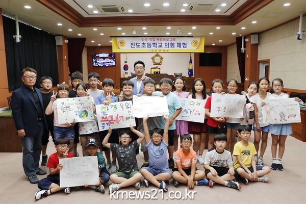 (뉴스21/장병기기자)=진도군의회가 진도초등학교 학생 100여명을 대상으로 지난 18일(수) 진도군의회 견학 등 ‘의회 체험 프로그램’을 운영했다.