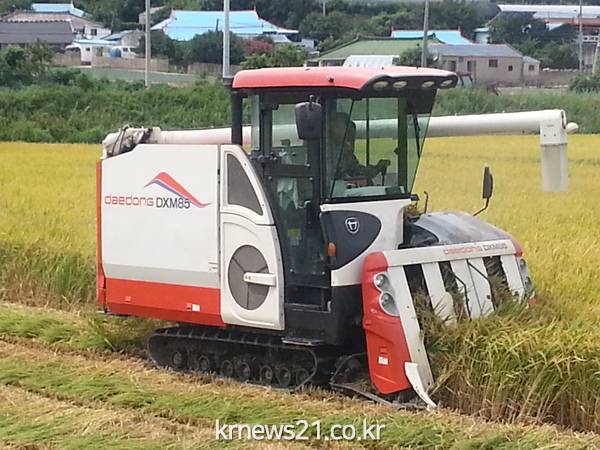 장고리 앞뜰에서는 장고 마을 주민등 20여명이 참석한 가운데 김대중(47)씨가 경작하는 6.8ha의 논에서 벼 베기가 진행됐다.