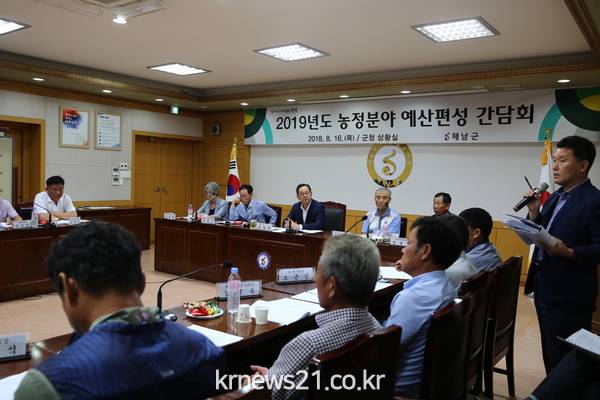 해남군은 내년도 농정분야 예산편성에 앞서 군민의 다양한 의견 수렴을 위해 지난 16일 2019년도 농정분야 예산편성 간담회를 개최했다.
