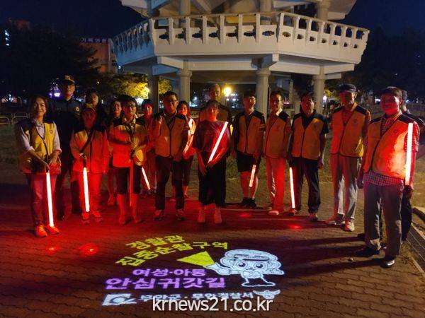 이번 합동순찰은 무안읍 불무공원 등 젊은 여성들이 주로 이용하는 장소와, 주민들이 요청한 탄력순찰 장소 등 주요 성범죄취약지역을 순찰하는 시간을 가졌으며, 공중화장실 비상벨, 로고젝터, 스마트가로등 작동체험을 통하여 공동체 치안의식을 향상하고, 경찰의 업무를 이해하는 시간을 가졌다.