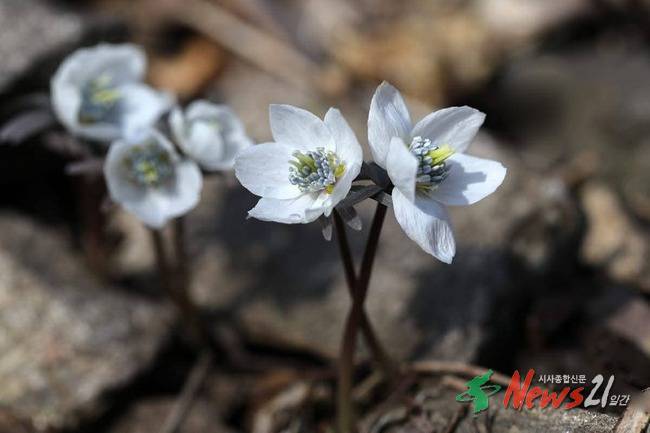 이른 봄 눈이 녹을 무렵 피는 대표적인 봄 야생화로, 흰색 꽃잎이 특징이다.