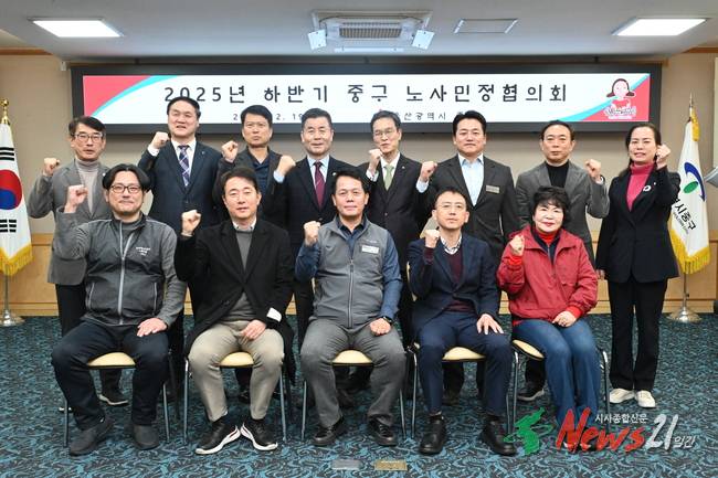 (뉴스21일간/노유림기자)=울산 중구(구청장 김영길)가 12월 19일 오전 11시 20분 중구청 중회의실에서 2025년 하반기 중구 노사민정협의회를 개최했다.